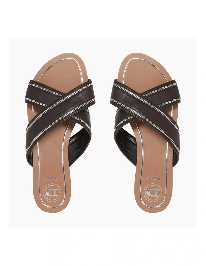 An essential update for your warm weather wardrobe. It features a cross strap design with a rounded toe. Finished with a subtle chain detailed trim.