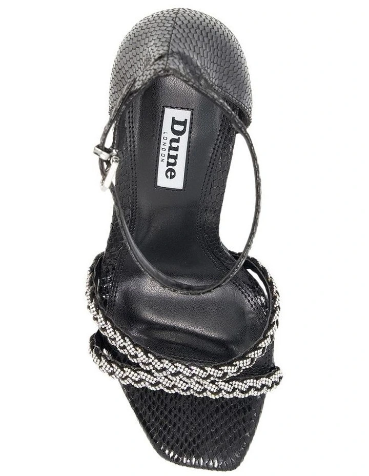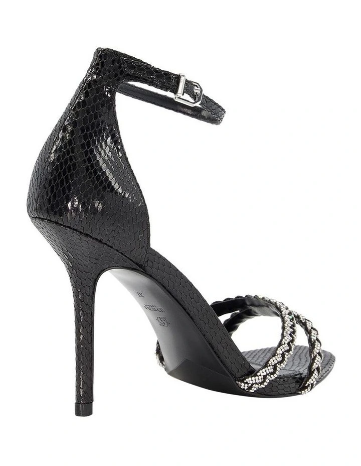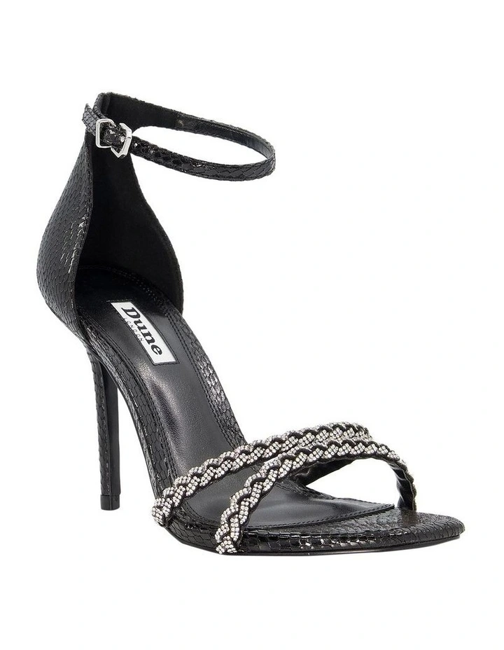 The sparkly strappy sandal that will turn heads as you walk. Designed with style the Mention heeled sandal will finish off your next formal outfit with the on trend reptile textured finish complemented by its embellished trim.Β Β