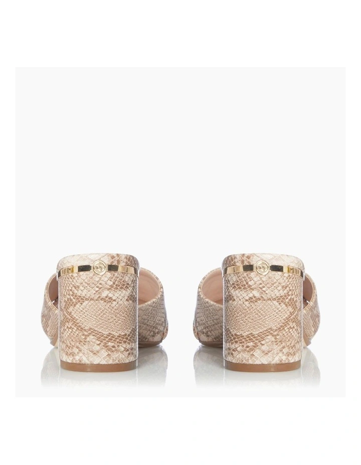 This sandal is the perfect choice for adding to your party line-up. In a classic slip on style it has hardware wrapped around the block heel. Finished with an open sandal toe and stylish cross over upper straps.