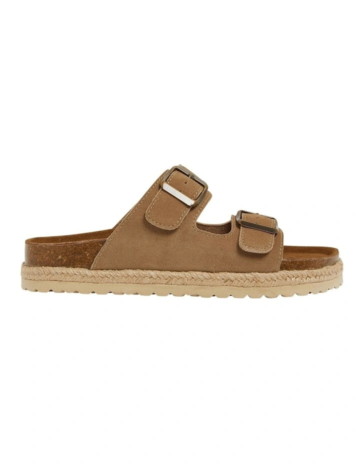 Imparting the everyday wardrobe with a laid-back appeal, CRETE is the rustic iteration of the classic summer slide. They feature a leather upper with an adjustable double strap construction, moulded footbed for optimum comfort and then set on a rope detailed sole. Slip them on with a midi skirt and graphic tee for a spirited summer edit.