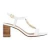 - Leather-wrapped squared heel with a rubber outsole offers elevated design and added grip.