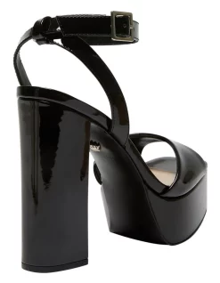 You’ll turn heads in this look-making sandal that elevates any out to fashion icon level. The towering block heel lengthens the leg and the platform adds comfort.