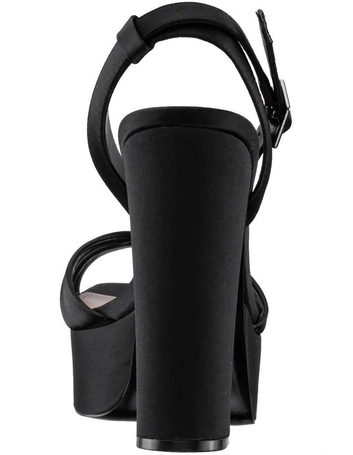 You’ll turn heads in this square-toe platform sandal wrapped in glistening materials. With an adjustable ankle strap and buckle closure, the towering block heel lengthens the leg whilst the platform adds comfort.