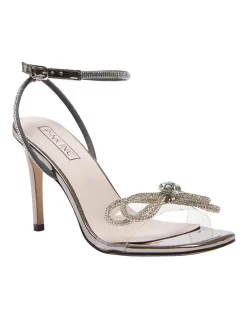 HOLLY marries a striking silhouette with opulent touches to create these stand out stiletto heels. Theyre crafted to an open squared toe heel and a clear PVC front strap for a barely there effect, then adorned with a sparkling bow and countless crystals silhouetting the slender adjustable strap. Style them with any evening wear as the main accessory to your outfit.Β