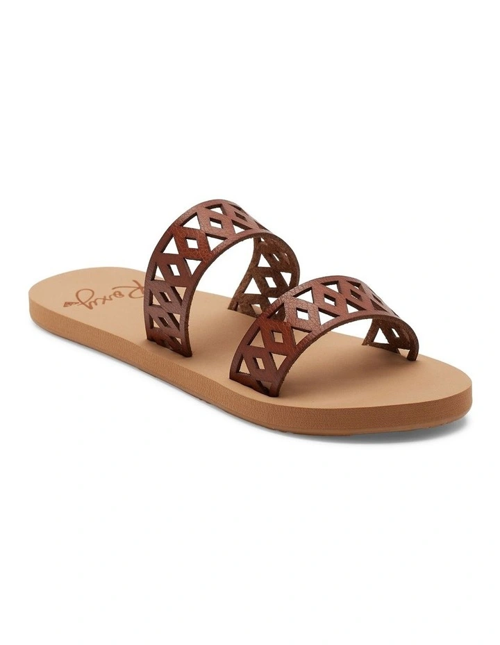 - Upper: Two-strap vegan leather with geometric shape laser cut-outs