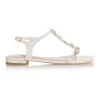 Slide into a stylish pair of comfortable yet sophisticated sandals. Perfect for anything from relaxed looks to dressed up occasions, this pair of flat sandals features a fabric cross strap detail and gold-look detailing that elevates the classic silhouette.