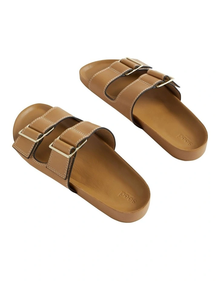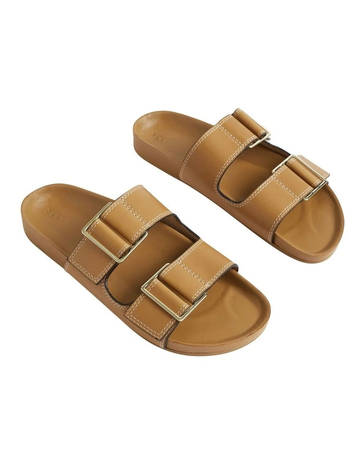 For an elevated sandal silhouette, this pair of leather sandals are a chic option. Detailed with gold hardware, the two-strap design is easy to slide on and comfortable to wear thanks to the moulded footbed.