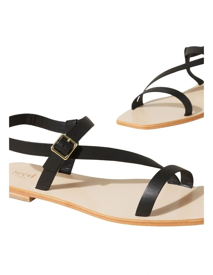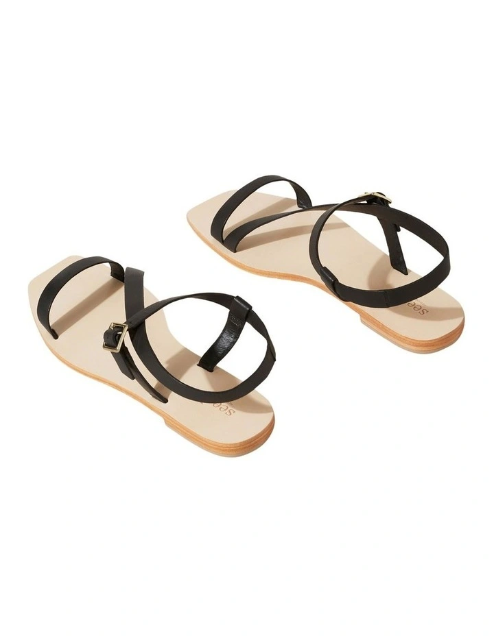 Feel safe and secure in these sturdy strappy sandals. A comfortable wardrobe essential, this pair of classically designed leather sandals feature a wraparound ankle strap with a buckle fastening and a supportive cross-over toe detail for easy wearing.
