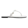 With knotted straps and metal trims, these thongs offer a polished yet casual look. They feature a leather upper and lining and a resin sole. A summer staple.