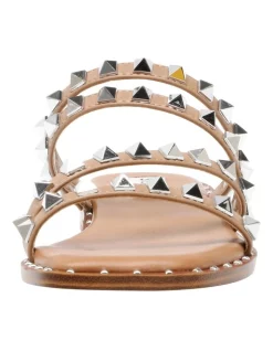 Trimmed in glamorous rhinestones or edgy pyramid studs, this strappy slide gives getups a festive finishing touch. A barely-there heel punctuates, offering support and gentle lift that wont slow your stride.