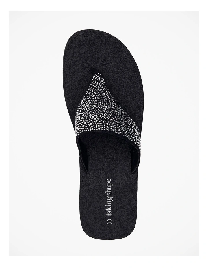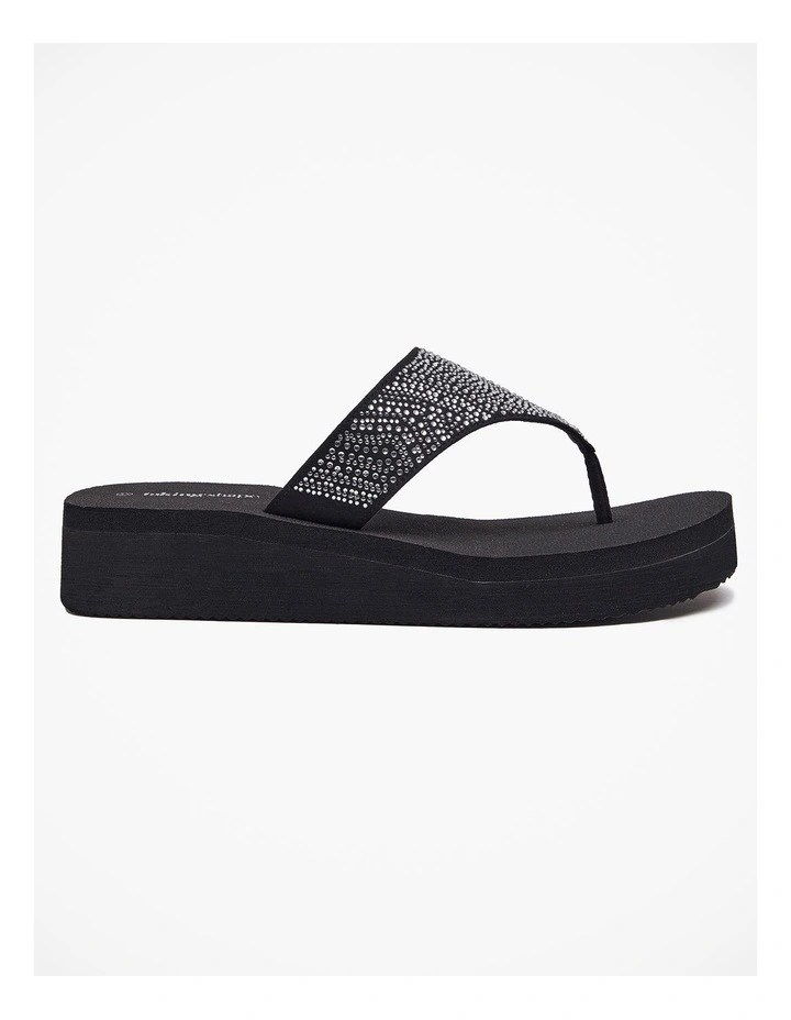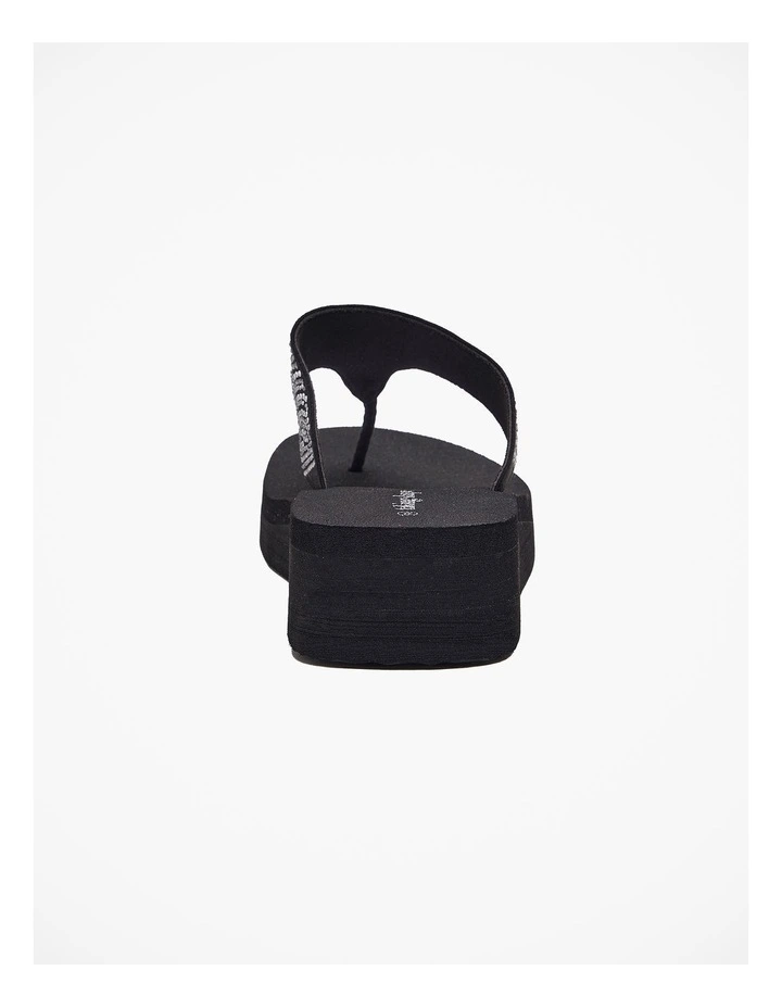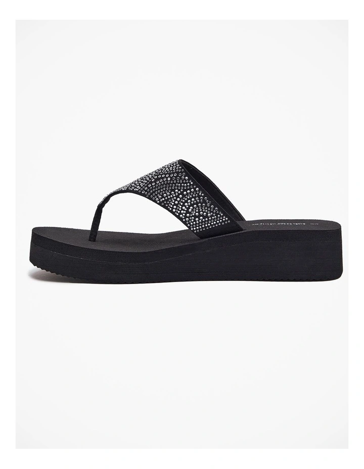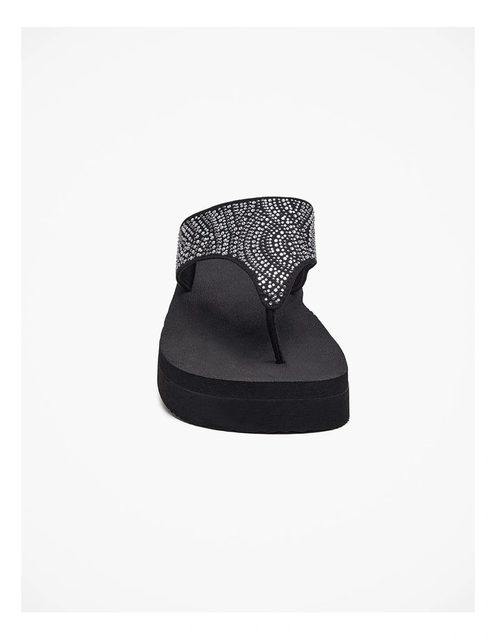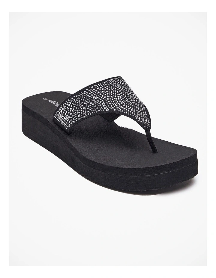 This ultra soft sandal is crafted out of a premium soft foam with a 4cm elevated wedge to elongate the leg. The upper features glamorous hot fix detail to add pizazz to any outfit, taking you from day to night with ease and comfort at the forefront.Β
