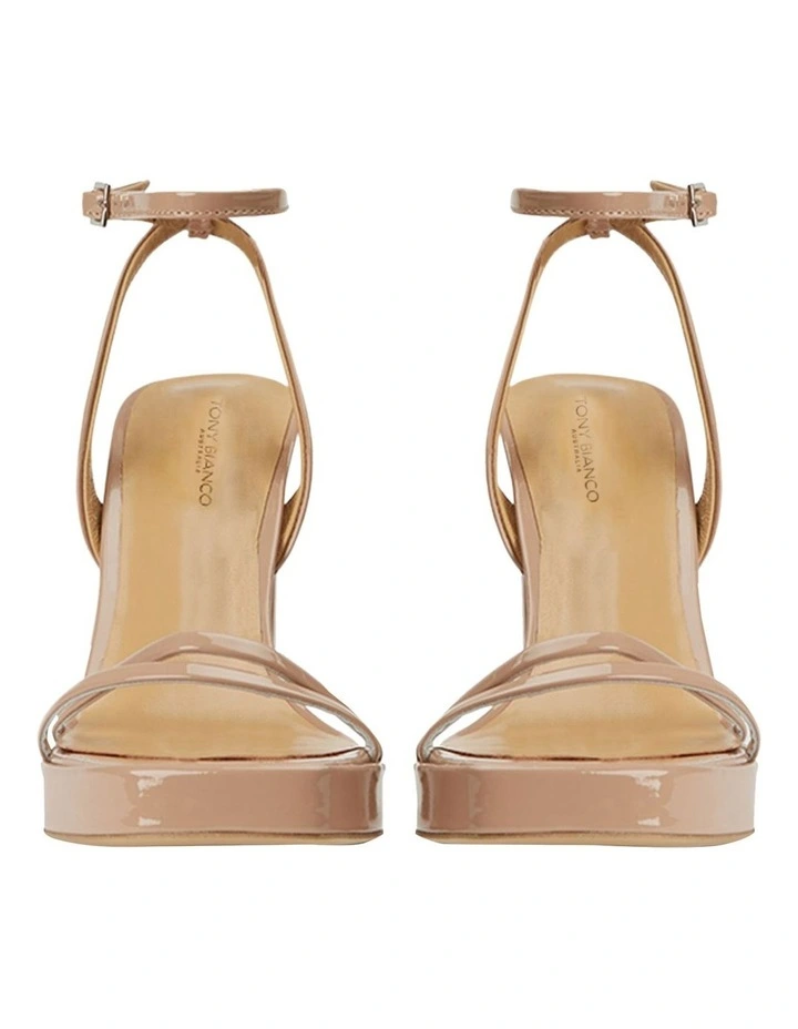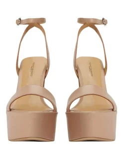 Level up your closet with the newΒ DandyΒ platforms. Showcasing a strappy design, these nude leather heels feature a squared toe-shape with slender foot-framing straps and a sturdy platform block heel , to take your look to the next level.