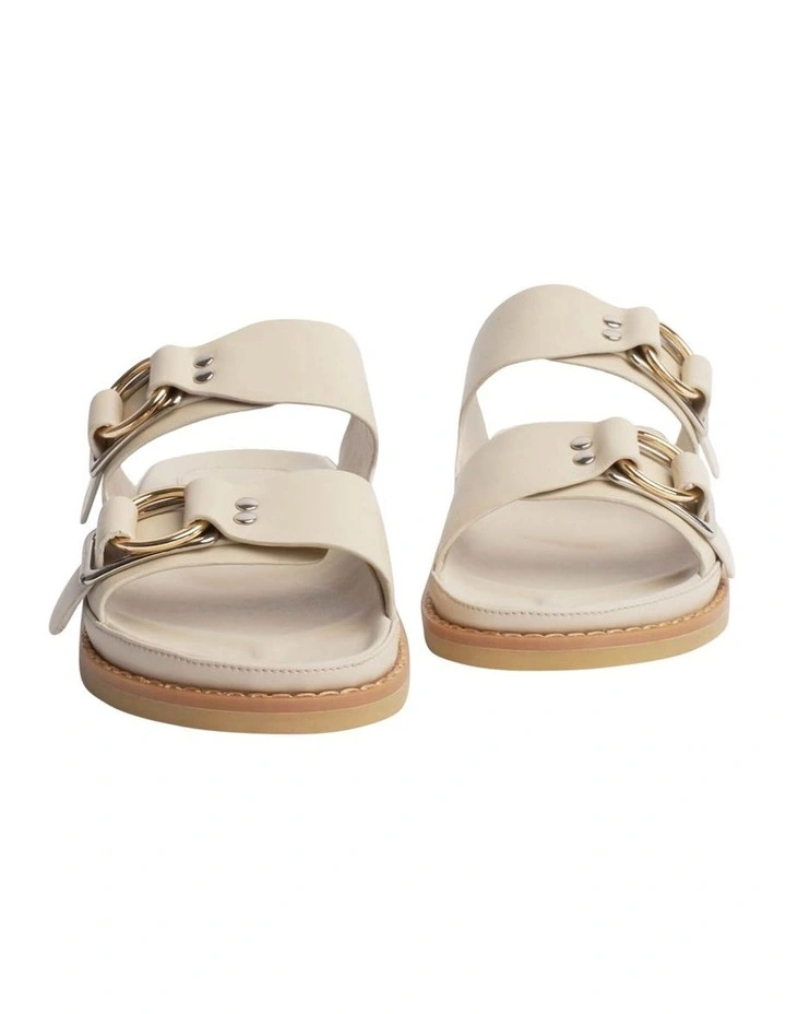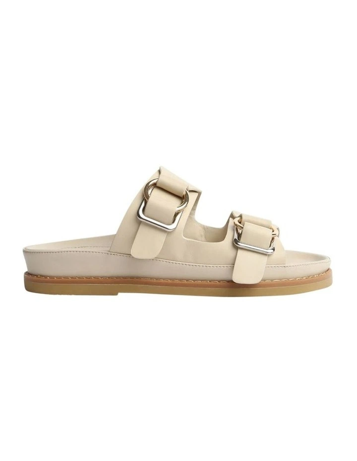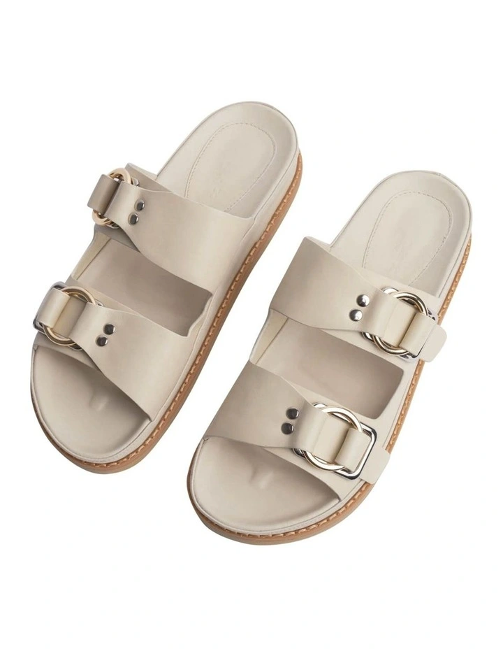 Introducing your new ride or die, Hunter. The flat slides designed for summer-time adventures, around-the-house wear or for a day full of errands – whatever your reason, Hunter has you sorted. Designed with a flat cushioned foot-bed and a thick chunky sole, alongside a round open toe and a flattering two-strap leather upper and all new leather lining. Finished with silver-toned hardware and a gold toned circular ring.